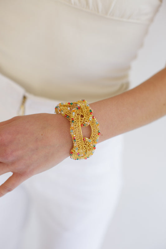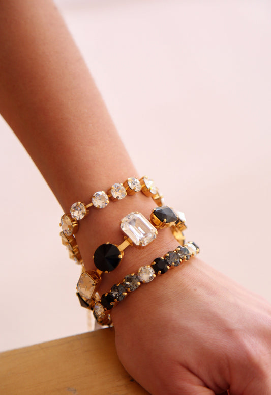 Pulsera Elastica de Cristales Negro, Gris y Clear